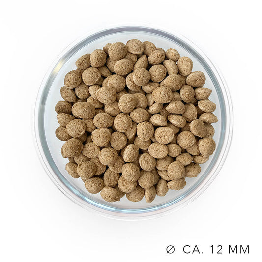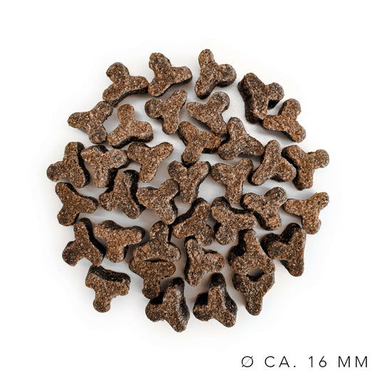 Unser Trockenfutter enthält neben Insekten hochwertige Zutaten wie Süßkartoffeln, Leinsamen und Äpfel. Die sorgfältig zusammengestellten Rezepturen versorgen deinen Hund mit allen wichtigen Nährstoffen und geben ihm Energie für eure gemeinsamen Abenteuer.