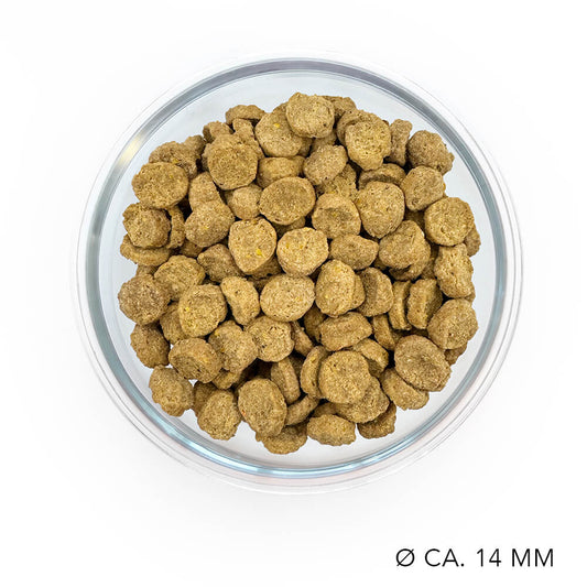 Unser Held vom Feld kombiniert Lupinen, Ei und Kartoffeln zu einem unwiderstehlichen Geschmack. Das Futter deckt den Nährstoffbedarf deines Hundes vollständig ab. Dank seines geringen Puringehalts ist dieses Futter gut für Hunde mit besonderen Ernährungsbedürfnissen.
