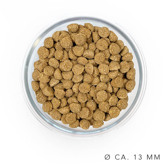 Mais, Hafer und Lupinen liefern deinem Hund Energie und eine leckere Mahlzeit. Diese Sorte ist perfekt für alle, die vollständig auf tierische Bestandteile verzichten und ihren Hund ausgewogen ernähren wollen. Gleichzeitig hat das Futter einen niedrigen Puringehalt.